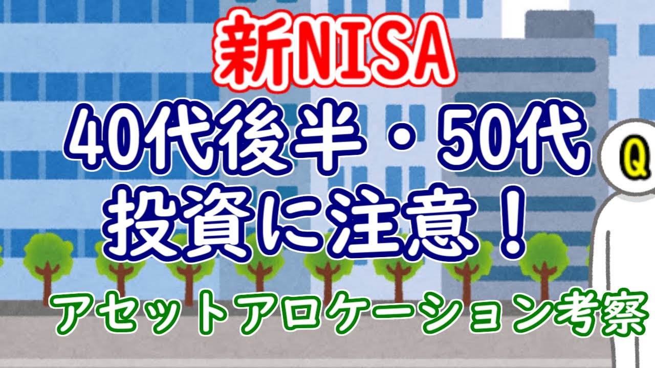 今回は前回の動画で述べていたアセットアロケーションについてです。とくにまとまったお金を持っている一方、時間を活かしづらくなる40代後半・50代にかけては注意が必要になります。