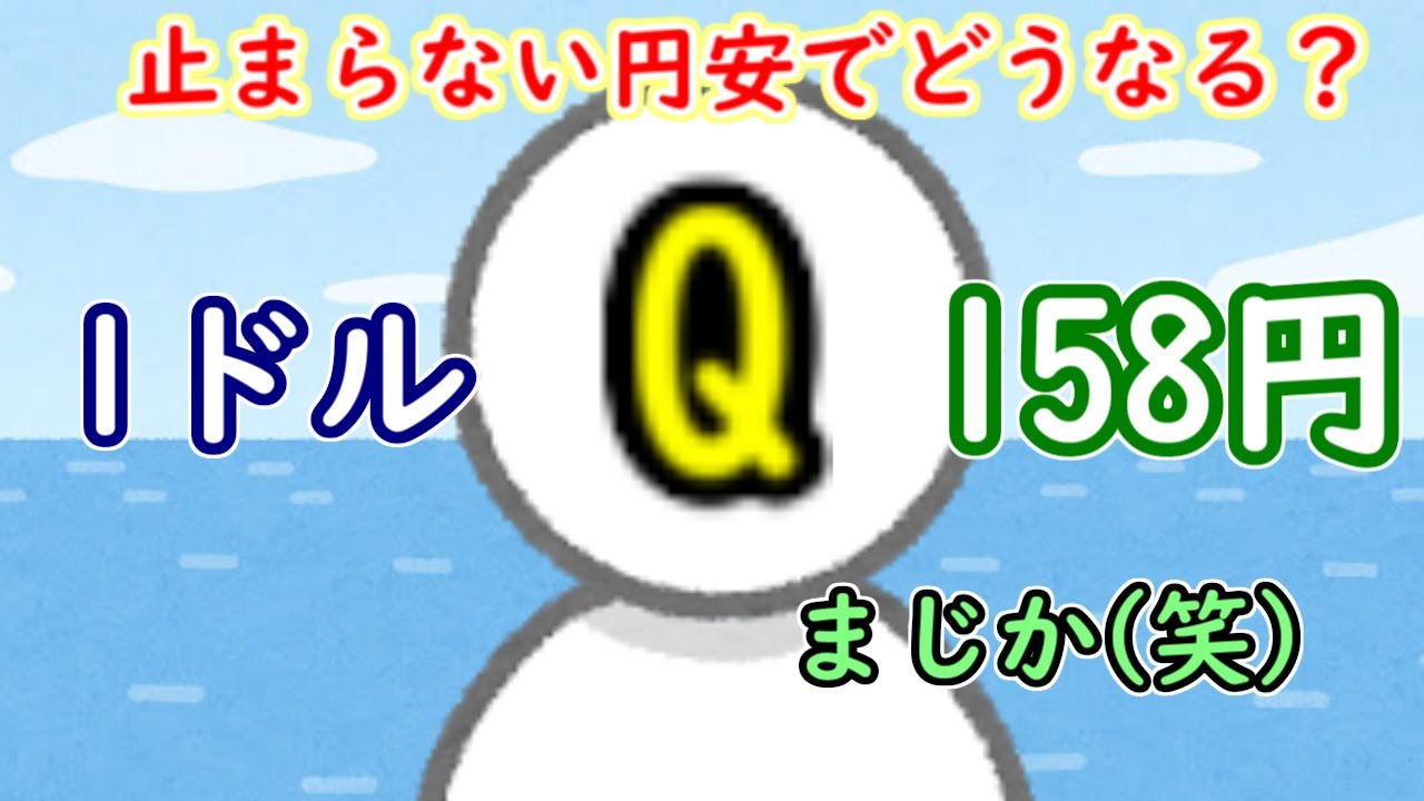 とうとう1ドル158円の世界に突入してしまいました。今回はこのことについてです。