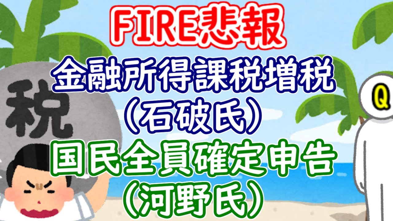 【FIRE悲報】金融所得課税強化&国民全員確定申告ー石破茂・河野太郎