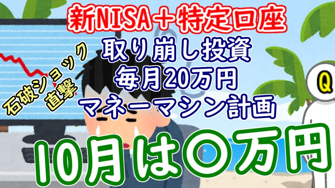 石破ショックあたりのタイミングで自動取り崩しが行われた、新NISAと特定口座を使った、取り崩し投資による毎月20万円マネーマシン計画の10月報告です。
