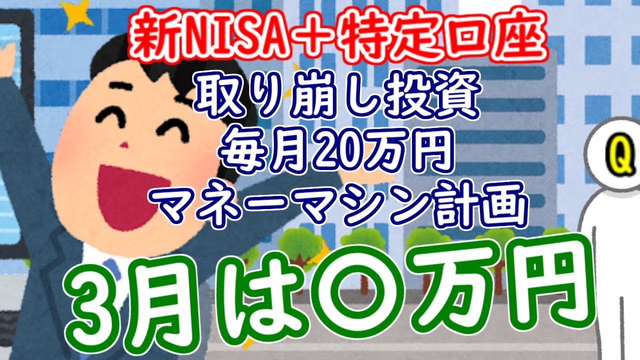 新NISAと特定口座を使った、取り崩し投資による毎月20万円マネーマシン計画の3月報告です。