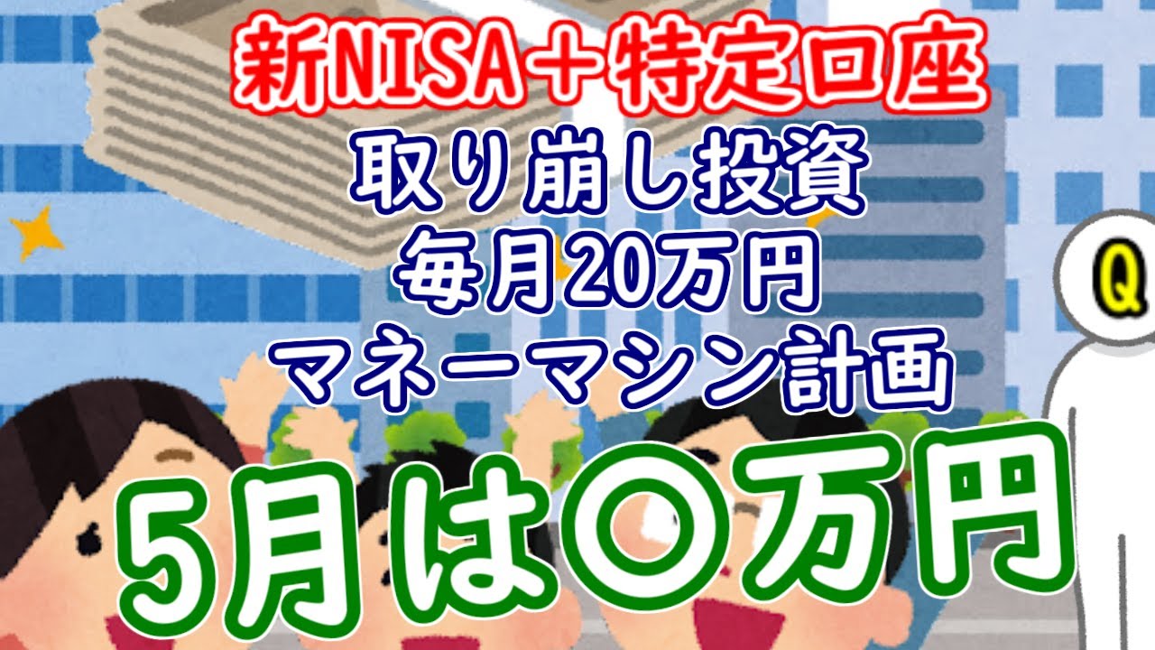 そんなわけで、いつものごとく新NISAと特定口座を使った、取り崩し投資による毎月20万円マネーマシン計画の5月報告です。リクエストがあったので、今月から全体のトータルリターンも出していきます。