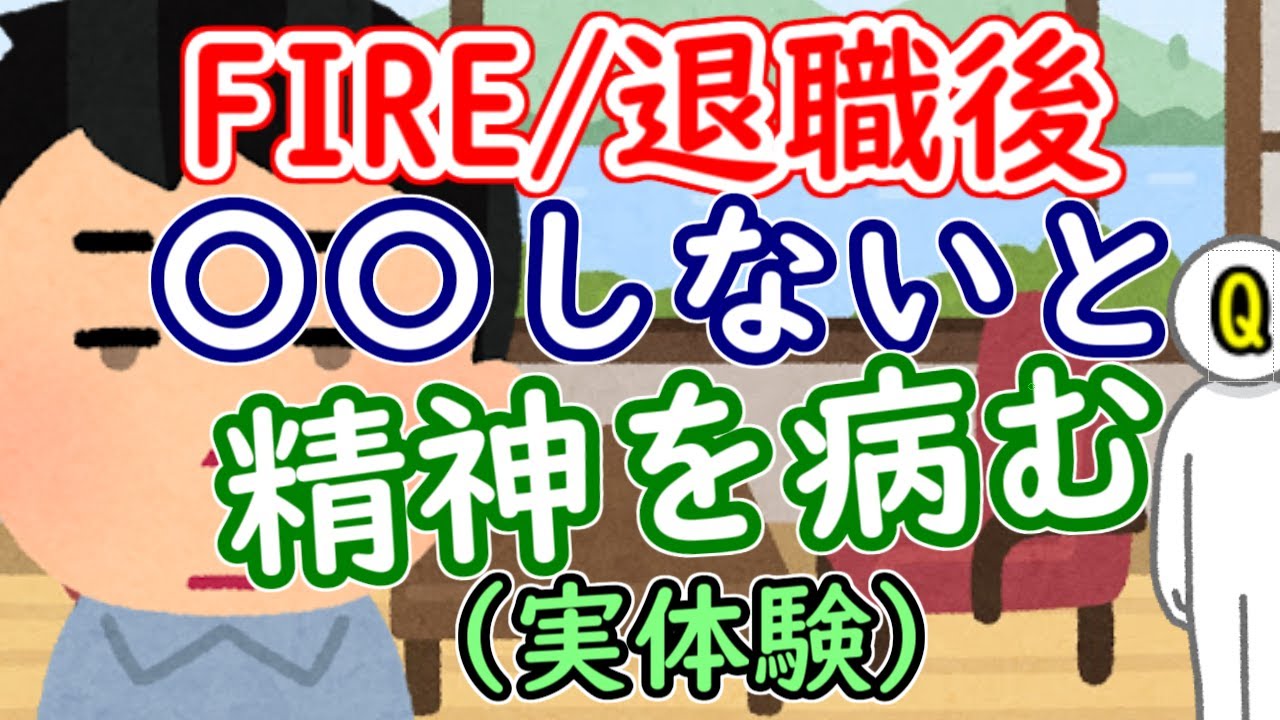 今回は、FIRE後・退職後に、これをやらないと精神を病むというか不幸になるという話をしていきます。