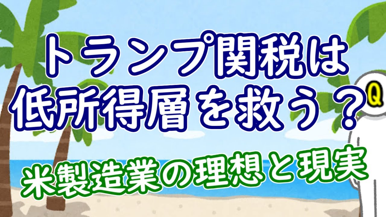 今回は、トランプ関税による製造業回帰によって、低所得者を救えるのかどうかについてです。