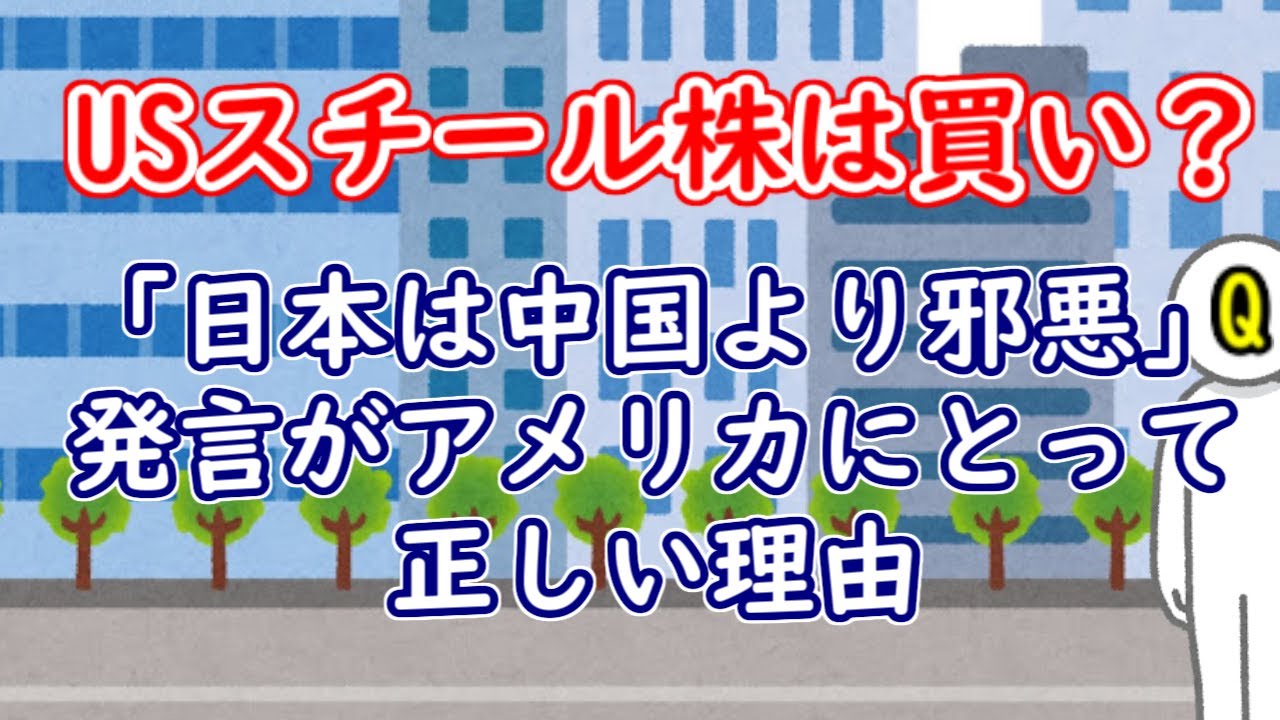 今回はUSスチールの件で、今買い向かうのはどうかということと、米鉄鋼大手CEOの「日本は邪悪」発言は正しいかどうかについてです。
